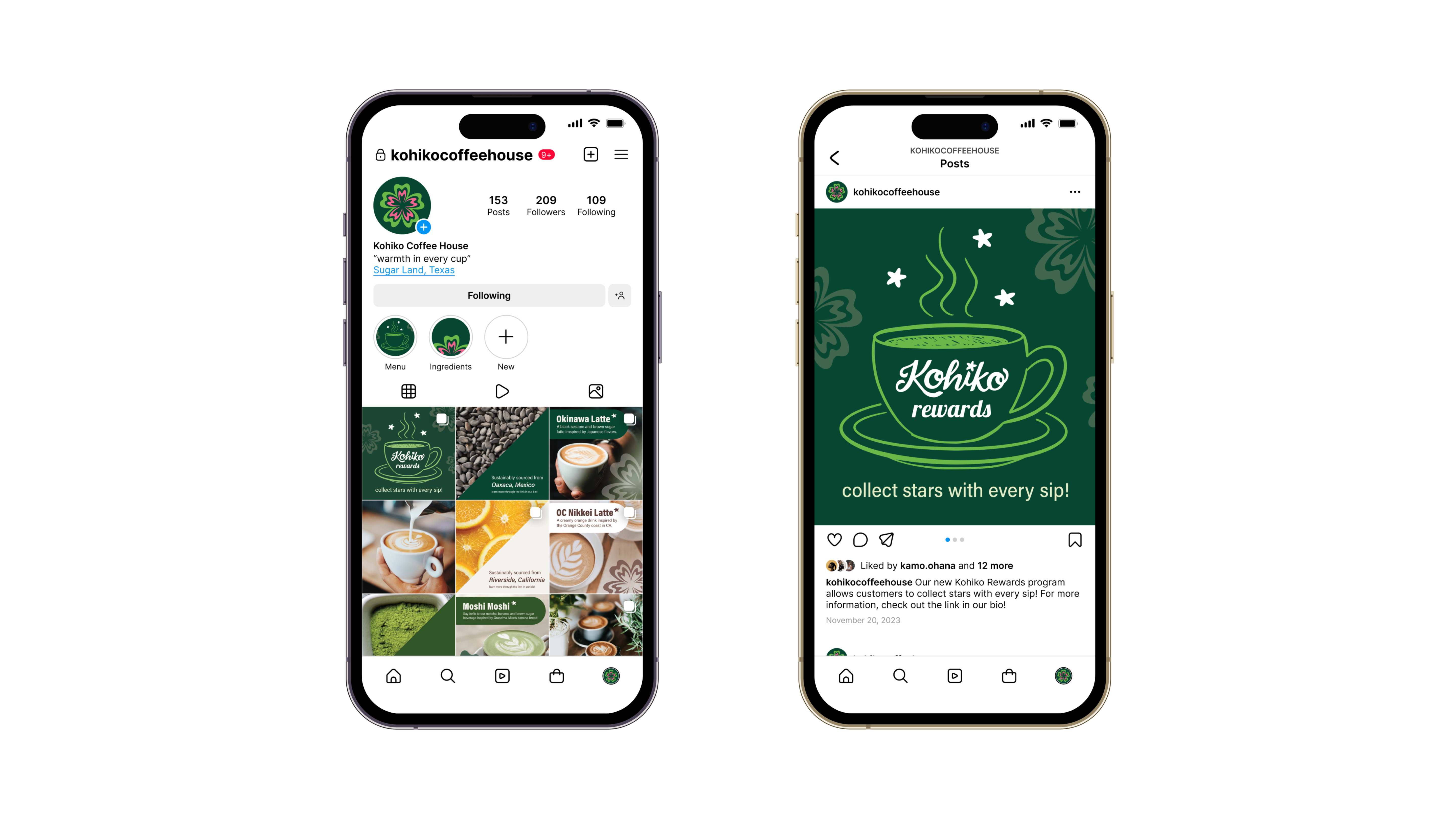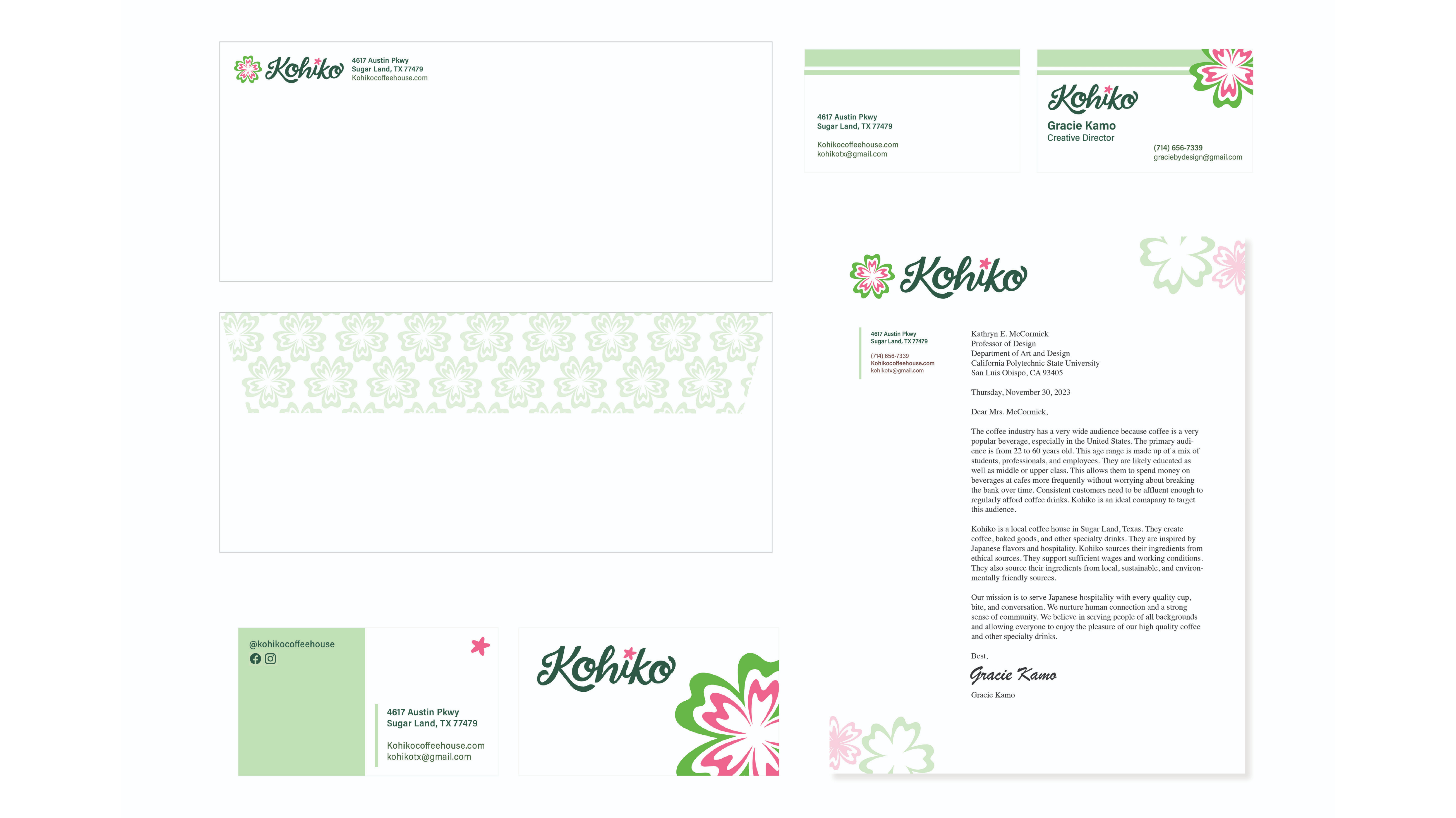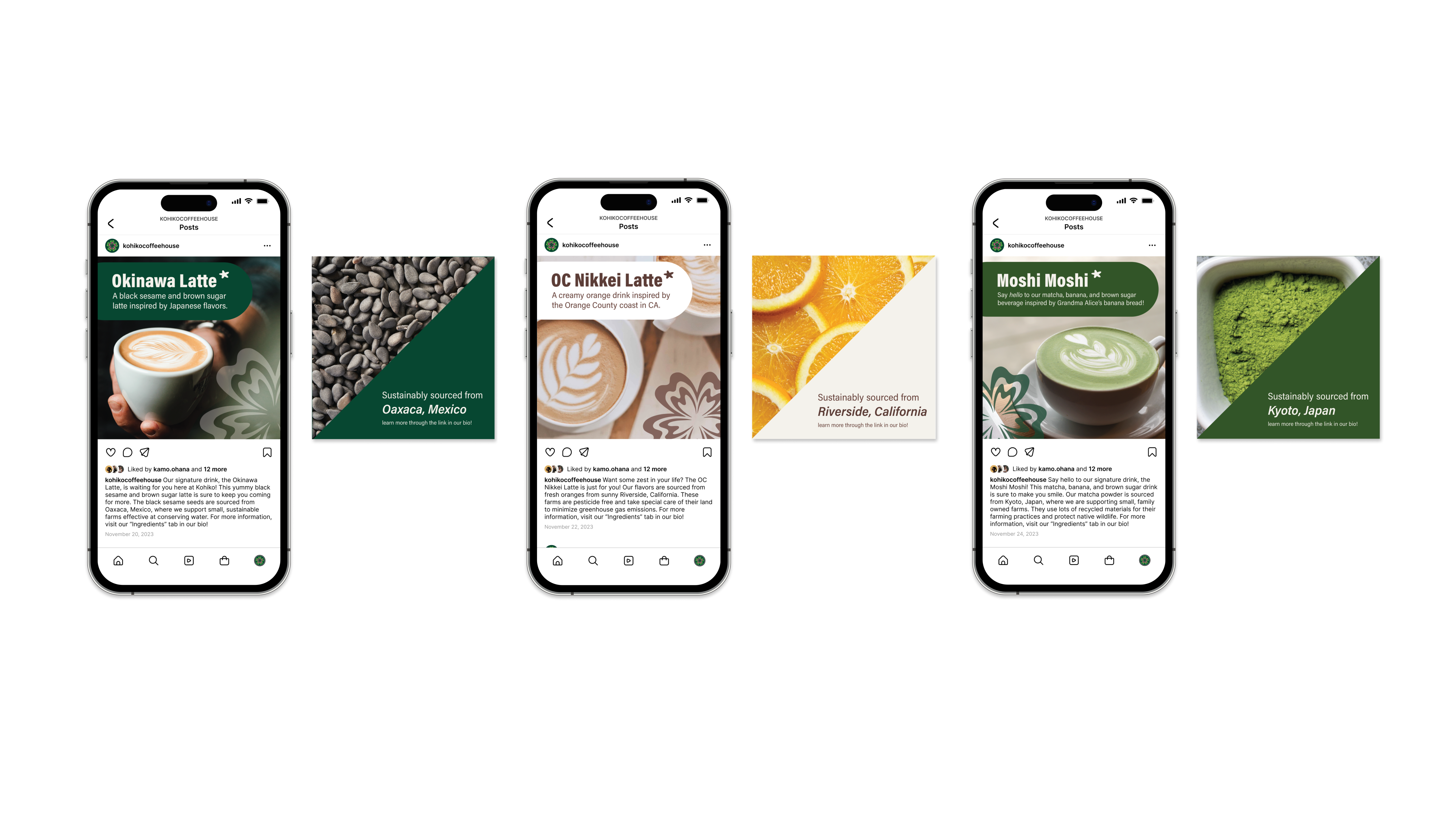 This design project includes logos, graphic elements, business materials, a menu, a mobile application design, a social media campaign, to-go cup designs, and a standards manual. These vibrant assets are designed to emphasize Kohiko’s Japanese flavors and hospitality.